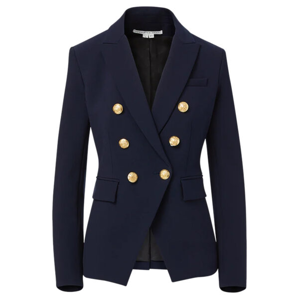 Blazer van het merk Veronica Beard. Blazer van Veronica Beard met dubbele knoopsluiting en steekzak detail op de voorzijde. Materiaal: 63% Polyester, 27% Viscose, 7% Katoen, 3% Elastaan