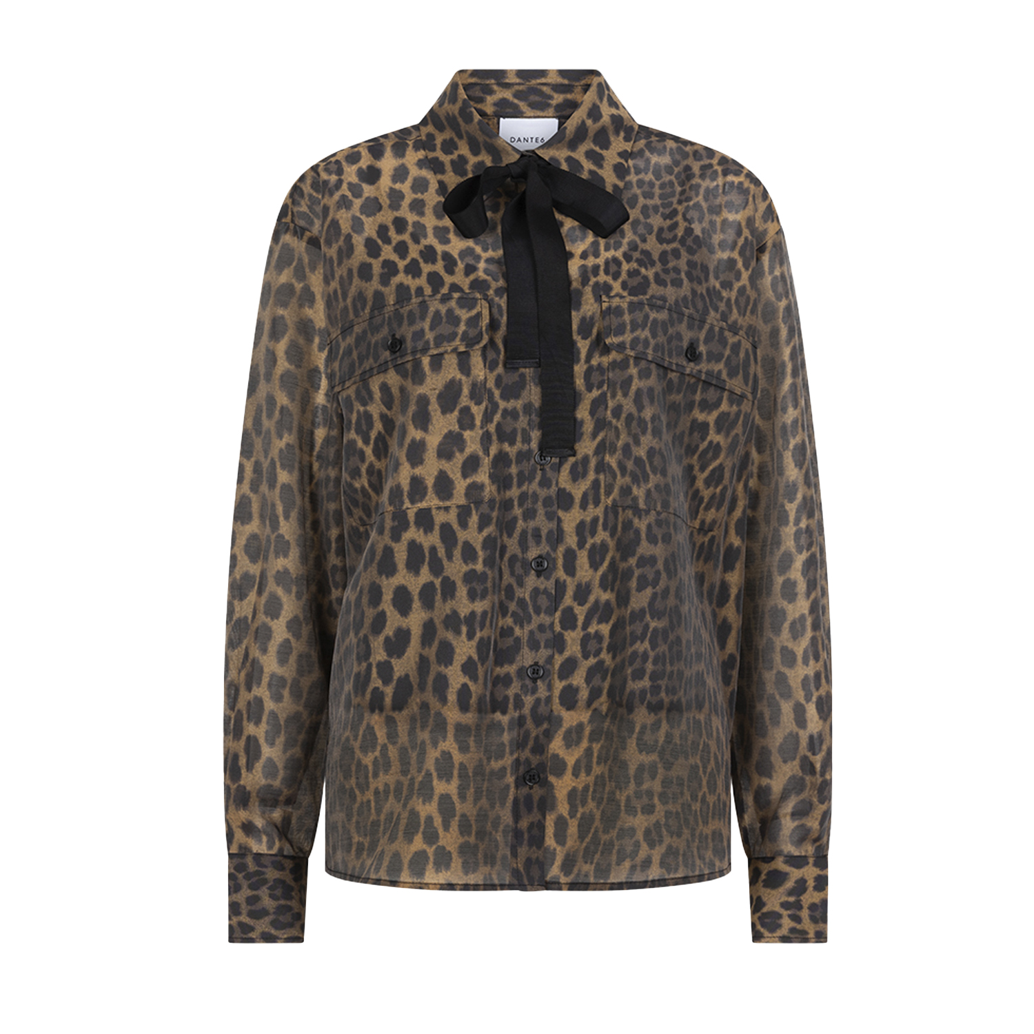 Blouse van het merk Dante6. Blouse van Dante6 met leopardprint en zwarte sjaaldetail die je speels kunt strikken of knopen. Materiaal: 85% Tencel, 15% Polyester