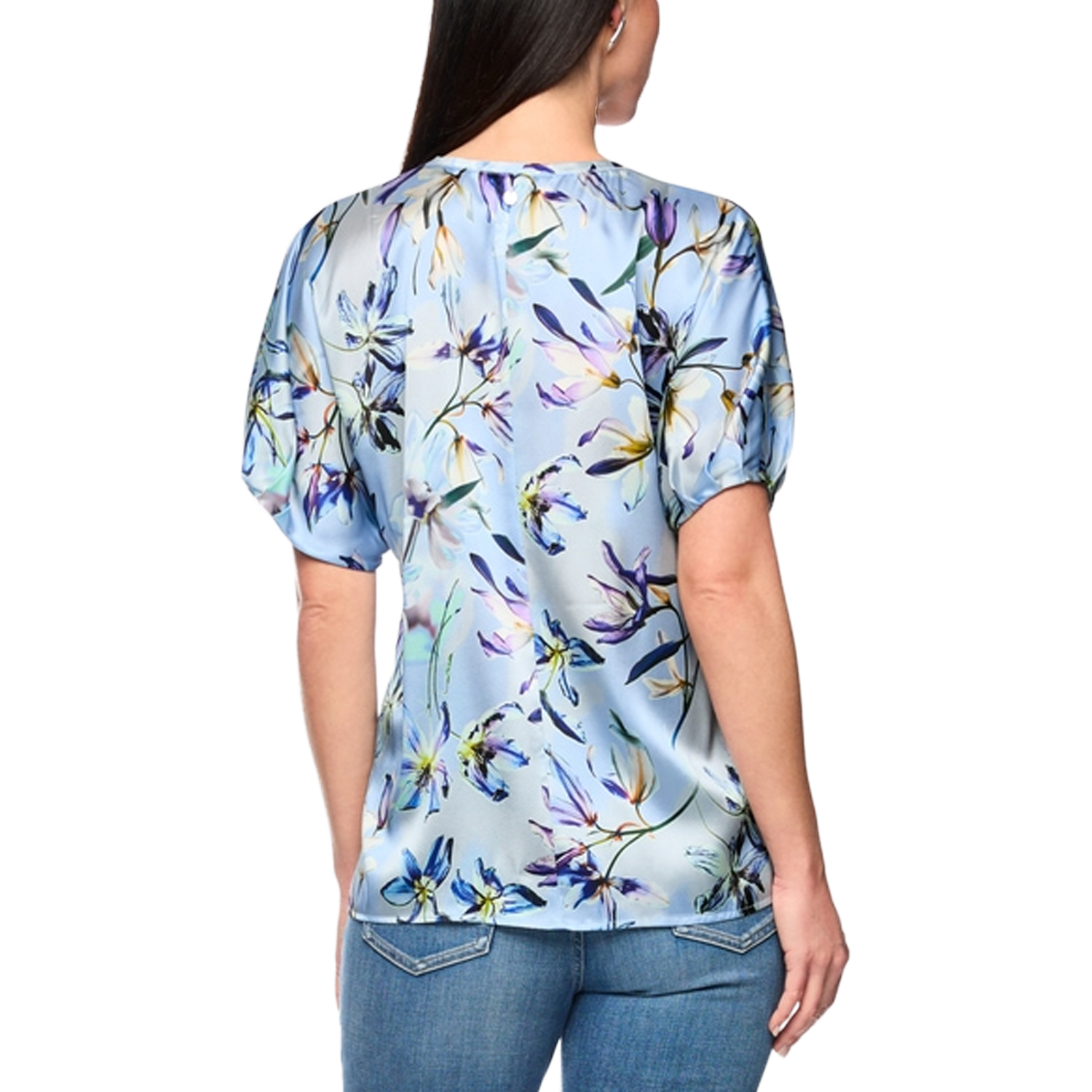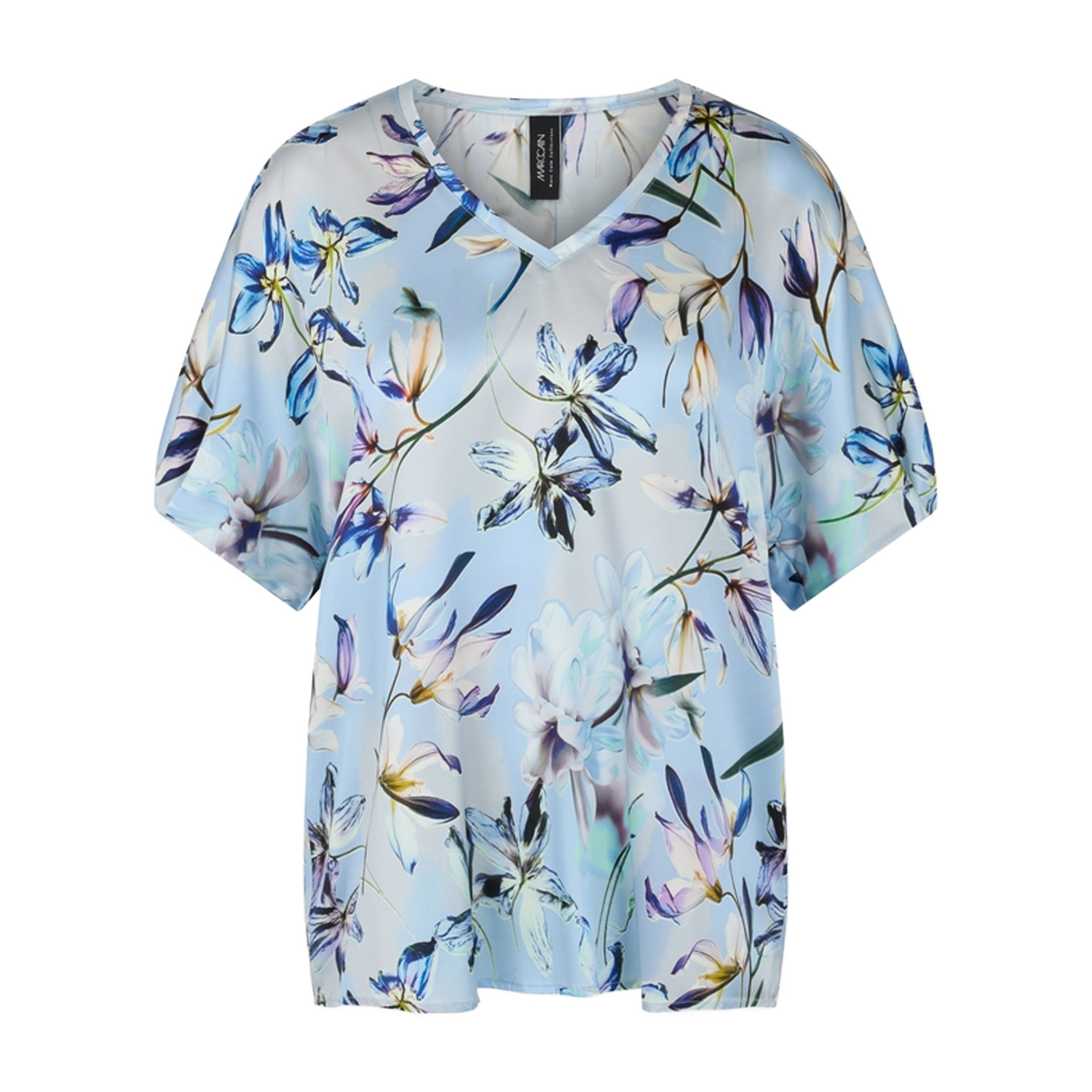 Blouse van het merk Marc Cain Collections. Blouse van Marc Cain Collections gemaakt van een chique mix van zijde en elastaan. De korte vleermuismouwen en een V-hals geven een vrouwelijk silhouet. Materiaal: 92% zijde, 8% elastaan