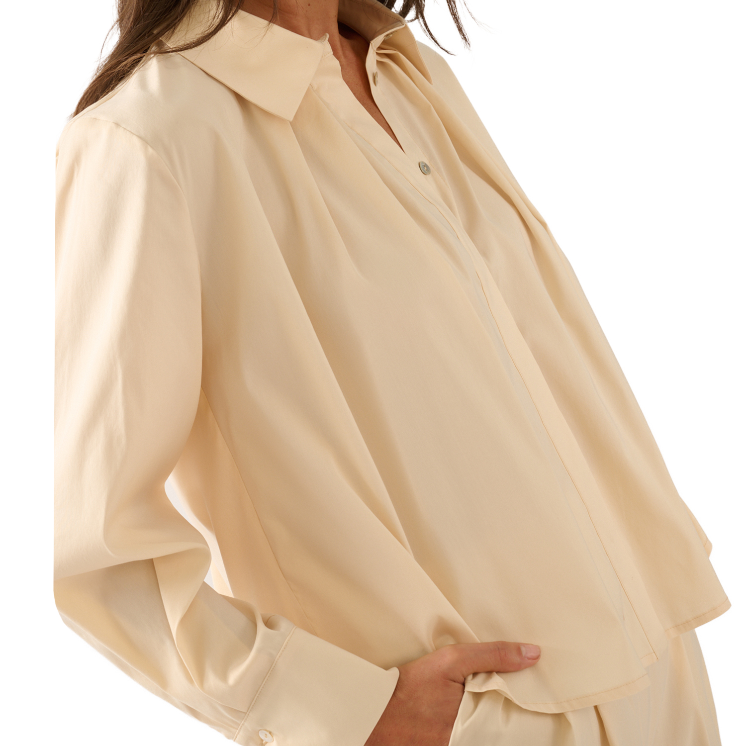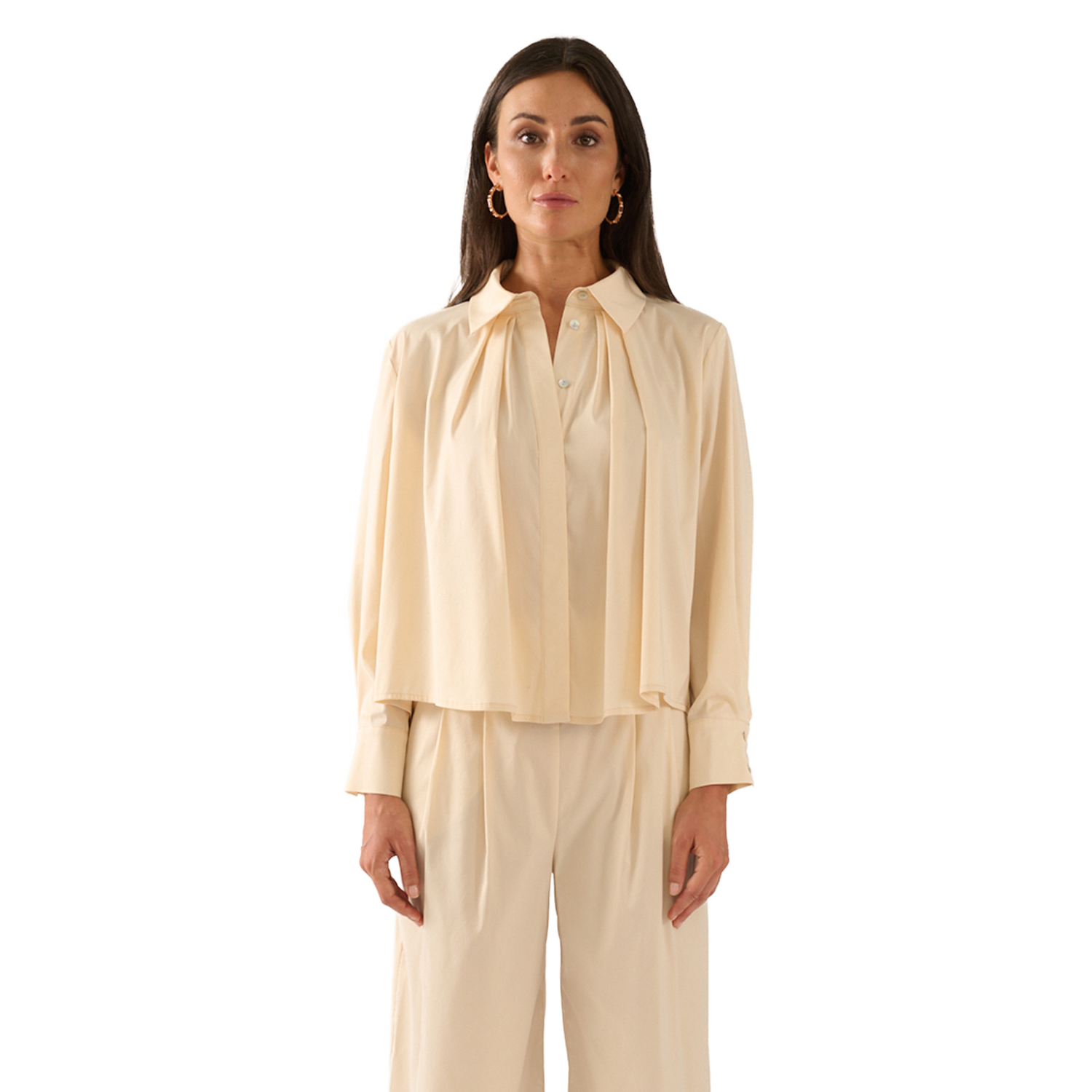 Blouse van het merk Oscar. Blouse van Oscar met knoopsluiting en geplooide details aan de voor en achterzijde. Materiaal: 63% Katoen, 37% Polyester