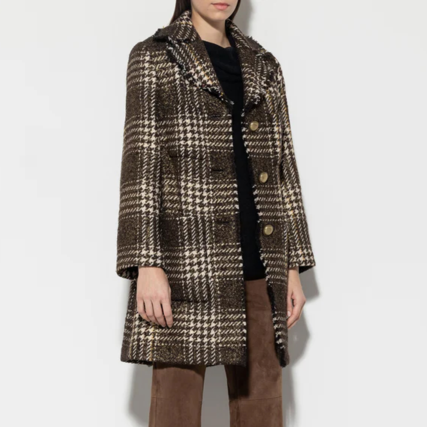 Coat van het merk Luisa Cerano. Coat van Luisa Cerano met steekzakken op de voorijde en gouden knopen. Materiaal: 42% Acrylic, 29% Polyester, 26% Wol, 3% Vezels