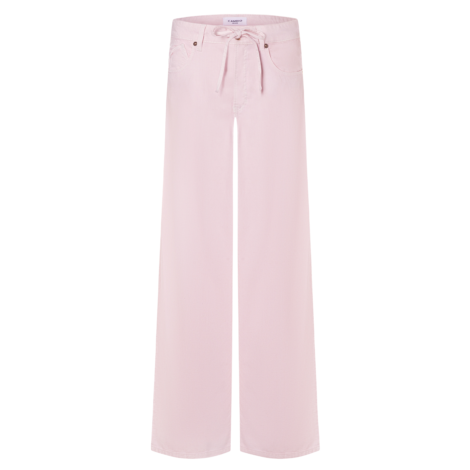 Jeans van het merk Cambio. Jeans van Cambio met recht vallende broekspijpen en strikdetail aan de voorzijde. Materiaal: 60% lyocell, 27% katoen, 13% linnen
