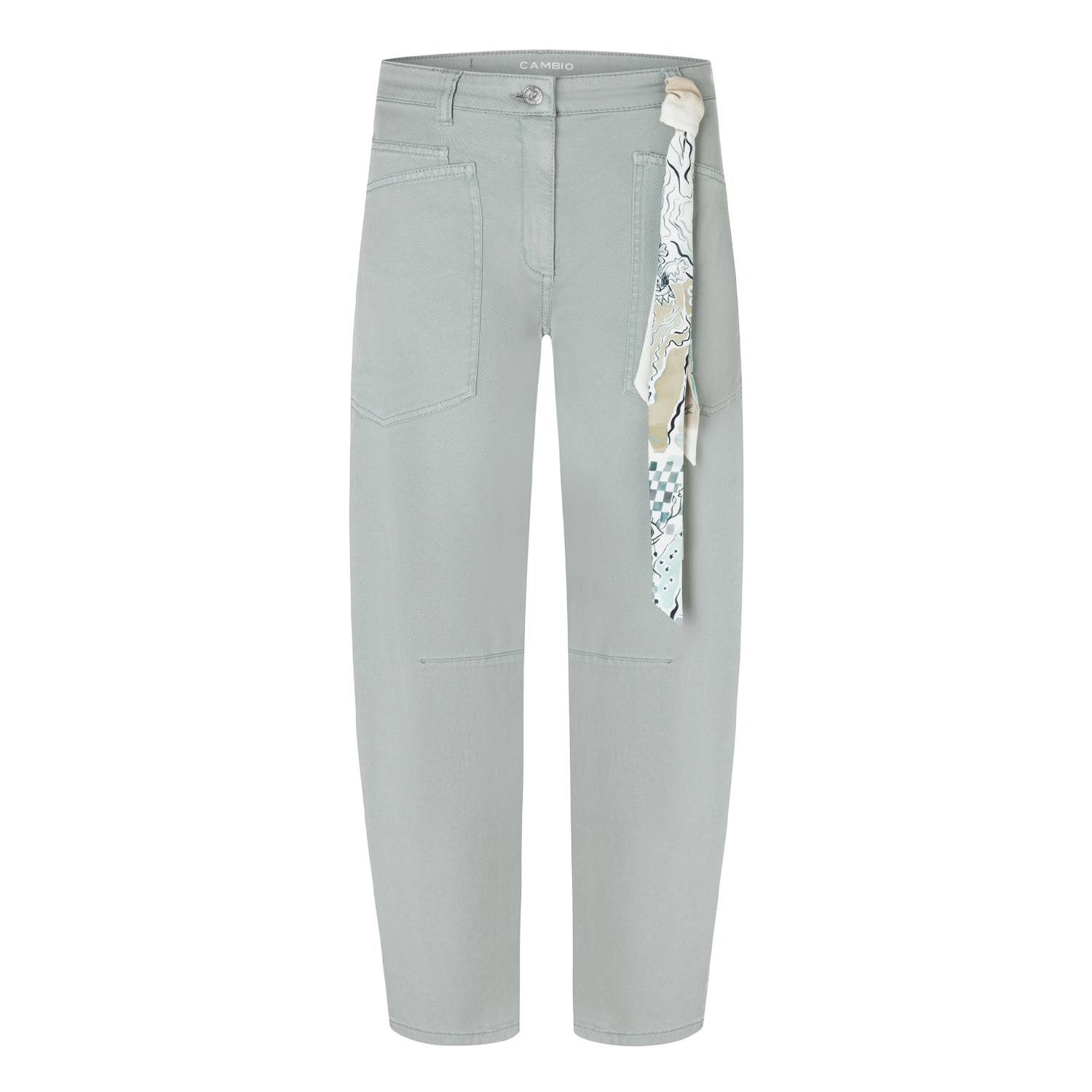 Jeans van het merk Cambio. Jeans van Cambio met sjaal detail aan de voorzijde en recht vallende broekspijpen. Materiaal: 56% lyocell, 42% katoen, 2% elastane