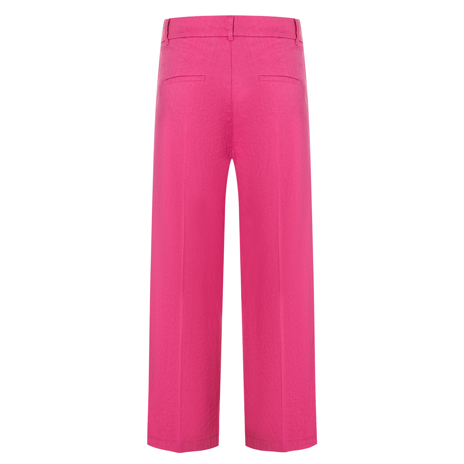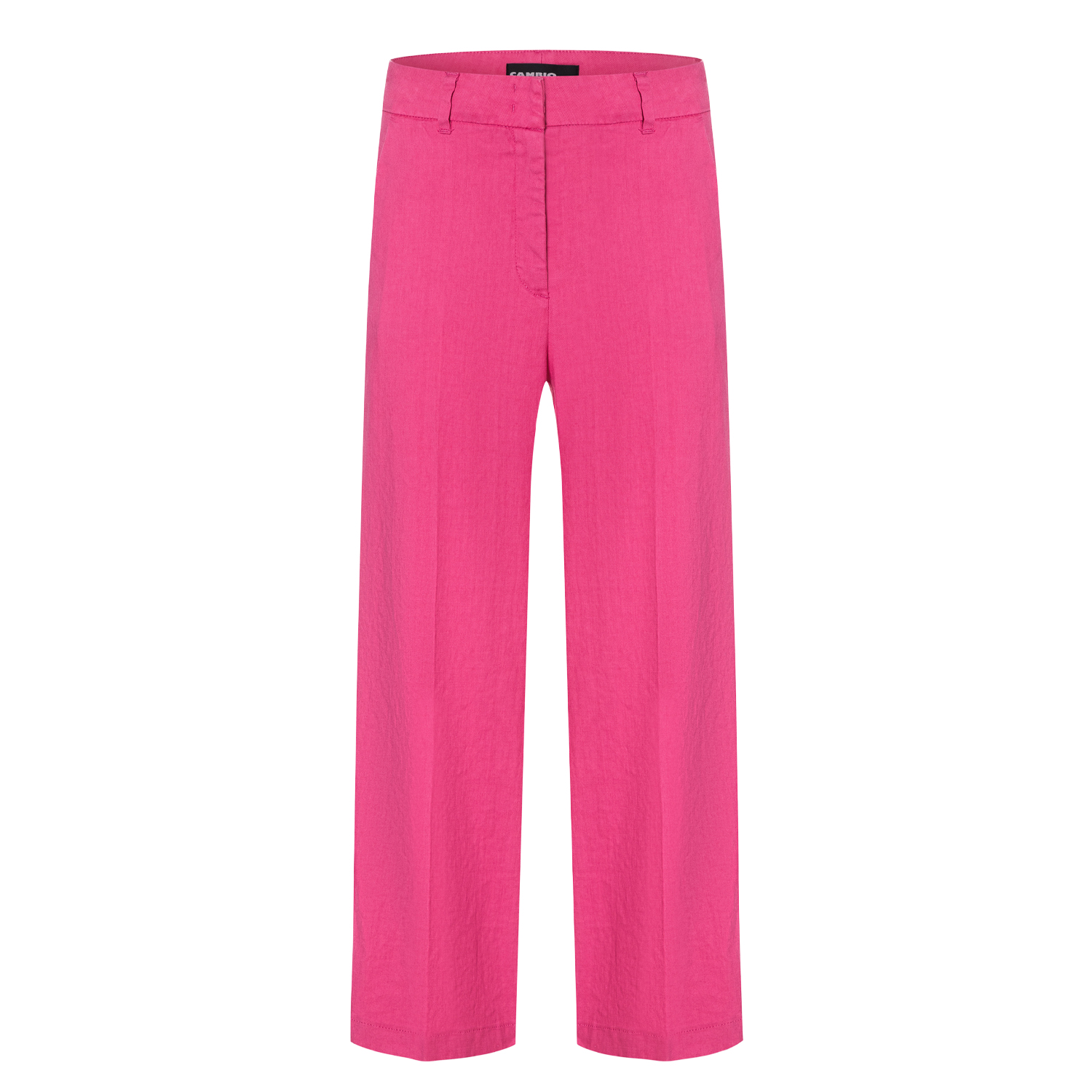 Pantalon van het merk Cambio. Pantalon van Cambio met recht vallende broekspijpen en steekzakken aan de voorzijde. Materiaal: 65% linnen, 34% katoen, 1% elastane