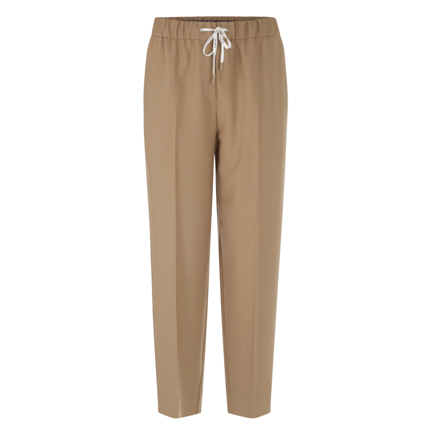 Pantalon van het merk Marc Cain Sports, model Ranchi. Broek heeft een relaxed fit en hoge taille. Materiaal: 53% polyester, 43% scheerwol, 4% elastan