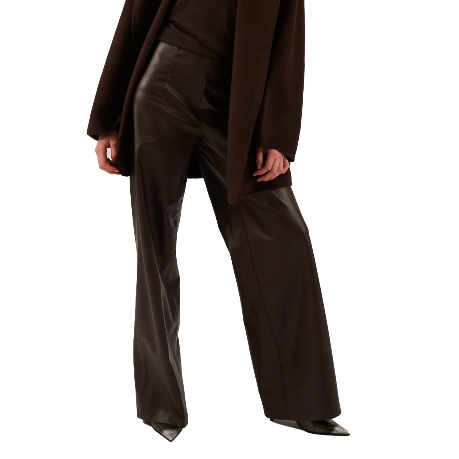 Vegan leather broek van het merk Oscar, model Kyle in de kleur chocolate. Materiaal: 100% polyester