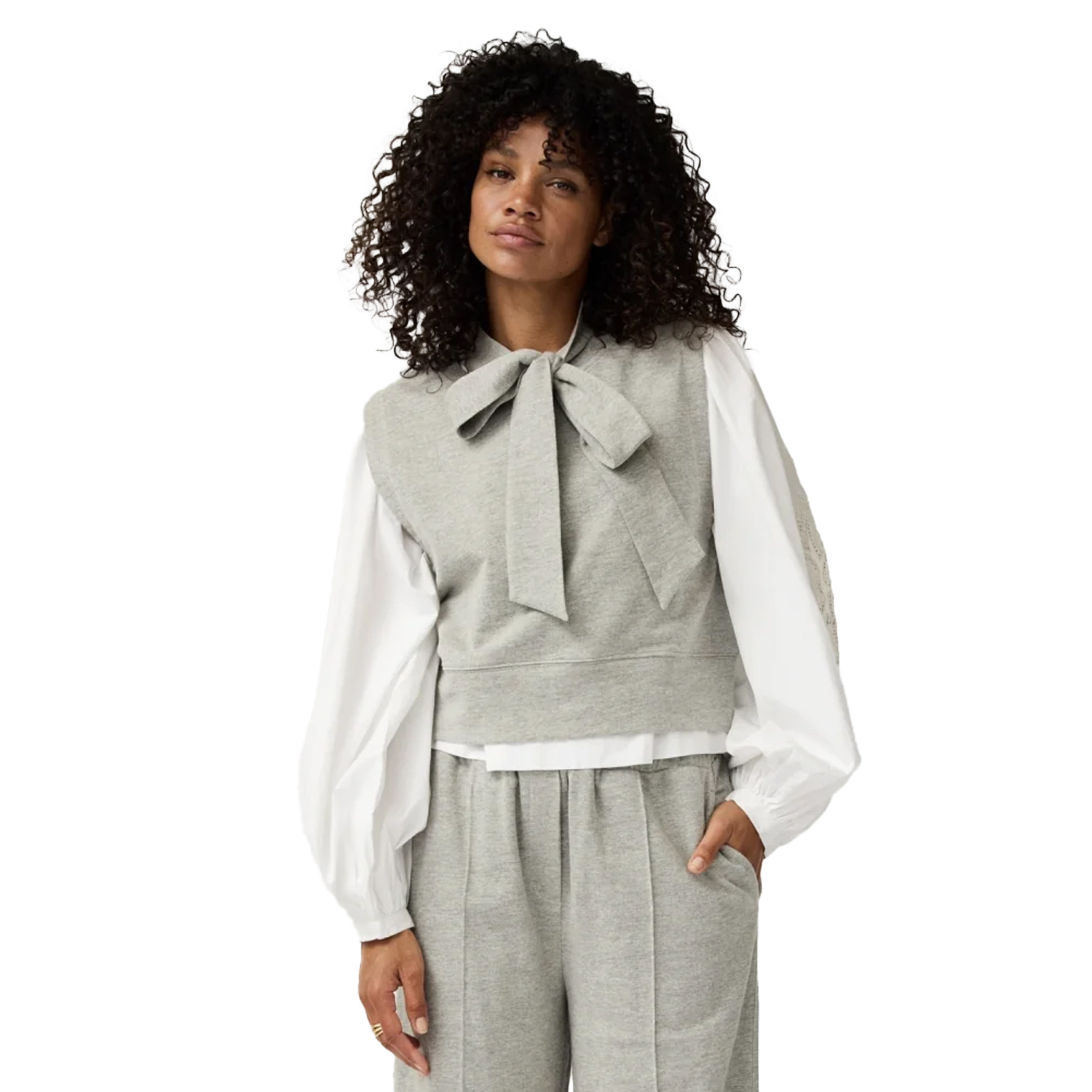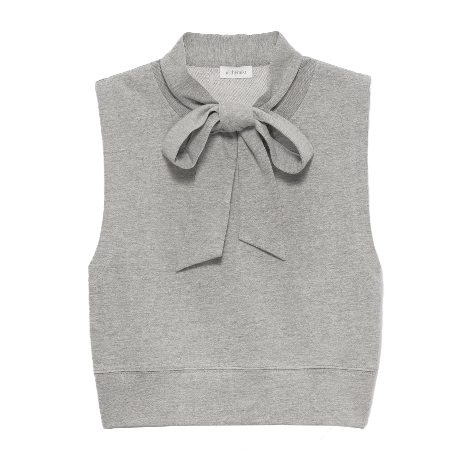 Mouwloze top van het merk Alchemist. De Alice is een mouwloze sweater met een speelse strikkraag en een ronde halslijn. De rechte pasvorm en het korte boord geven haar een moderne uitstraling en maken dit item gemakkelijk te combineren. Materiaal: 100% biologisch katoen