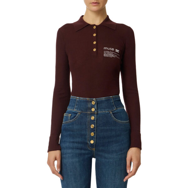 Pullover van het merk Elisabetta Franchi. Pullover van Elisabetta Franchi met ribeffect en nauwsluitende pasvorm. Materiaal: 99% Wol, 1% Elastaan