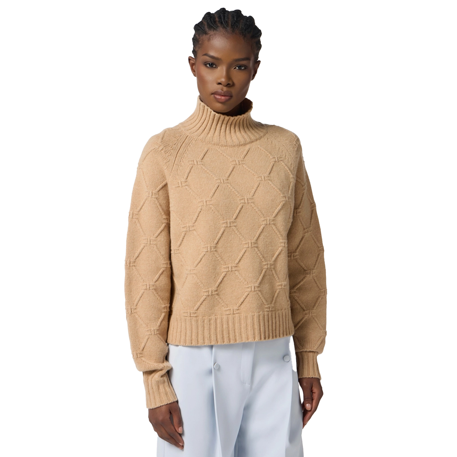 Pullover van het merk Elisabetta Franchi. Pullover van Elisabetta Franchi met opstaande kraag en ruitjesprint met logo. Materiaal: 90% Wol, 10% Kasjmier
