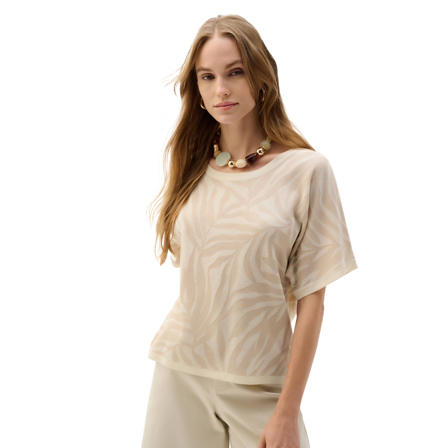 Pullover van het merk Joseph Ribkoff. Pullover van Joseph Ribkoff met all-over print en subtiele glitter. Materiaal: 14% Polyester, 86% Viscose rayon