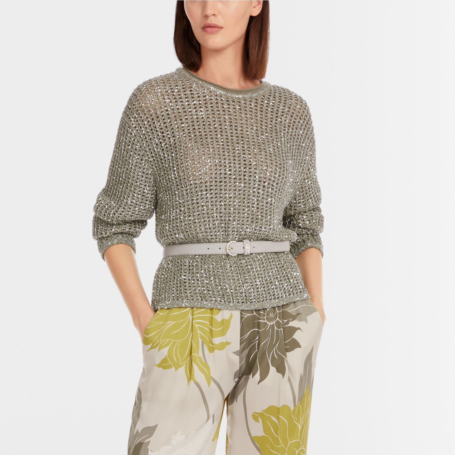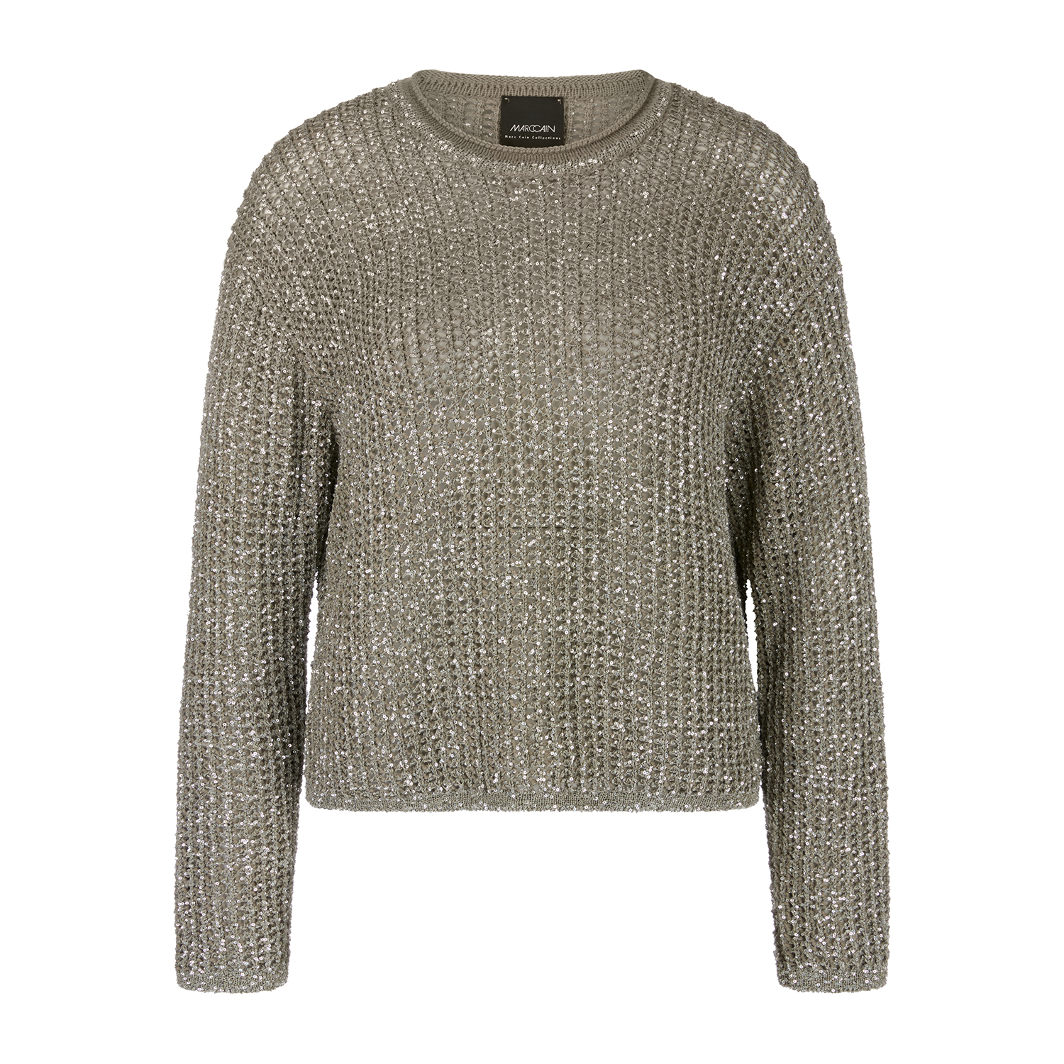 Luchtige trui gebreid in Duitsland van het merk Marc Cain Collections. Het model in een mix van zachte wol en alpaca is “Knitted in Germany”: Het breien van de garens op moderne breimachines en de veredeling van de stoffen gebeurt in Duitsland. Materiaal: 33% polyamide, 27% polyester, 24% acryl, 12% wol, 4% alpaca