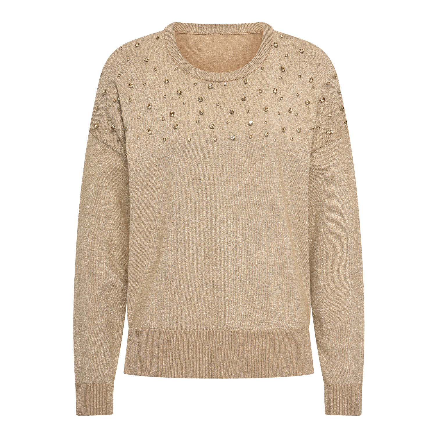 Pullover van het merk Niek Jansen Mode. Pullover van Niek Jansen Mode met sierlijke glitter aan de voorzijde. Materiaal: 70% Viscose, 15% Polyamide, 15% Metaalgaren