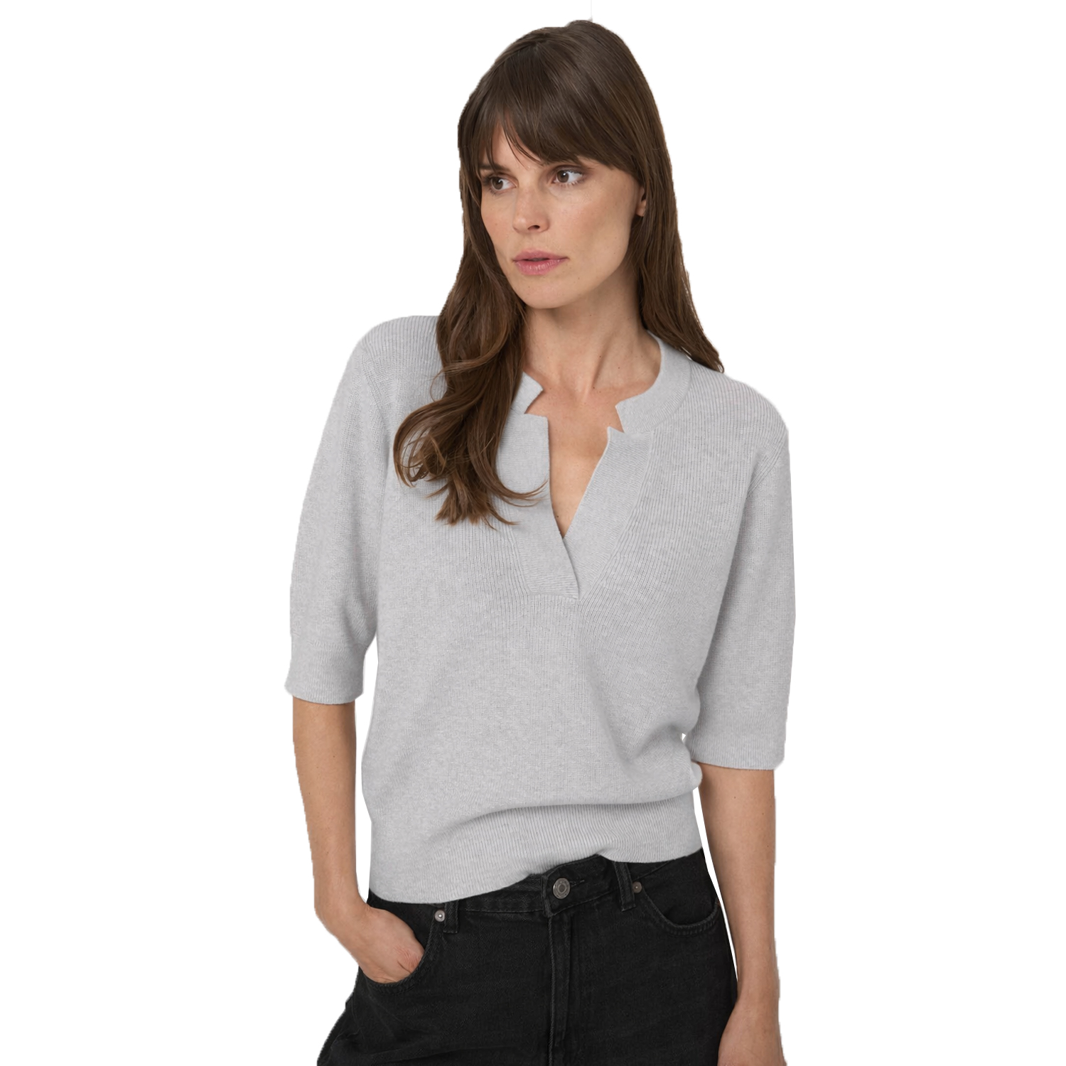 Pullover van het merk Repeat. Pullover van Repeat met halslijn met split en korte geribbelde mouwen. Materiaal: 85% Katoen, 15% Cashmere