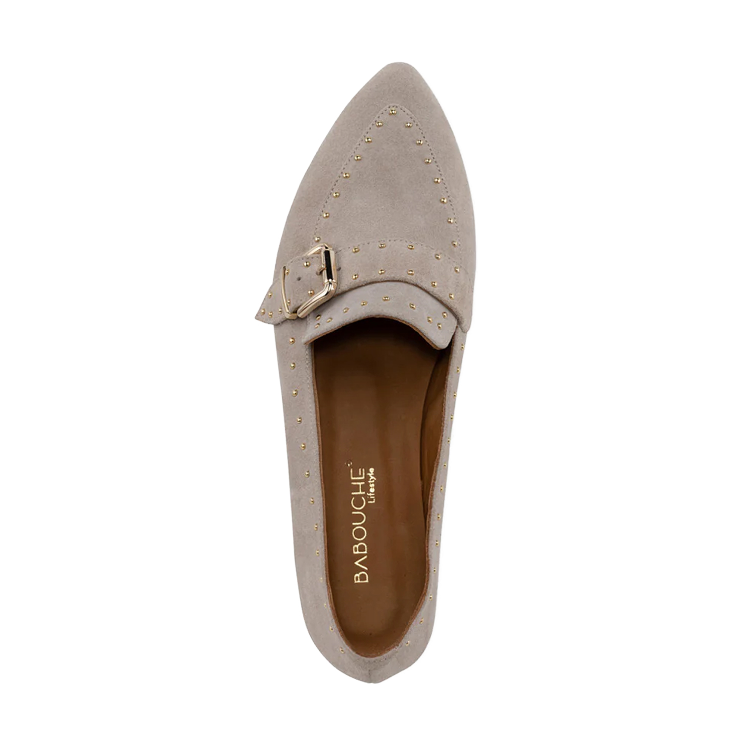 Loafers van het merk Babouche. Deze luxe loafers van Babouche wissel je gemakkelijk tussen zakelijk en casual. Ze zijn voorzien van gouden studs en een gesp .