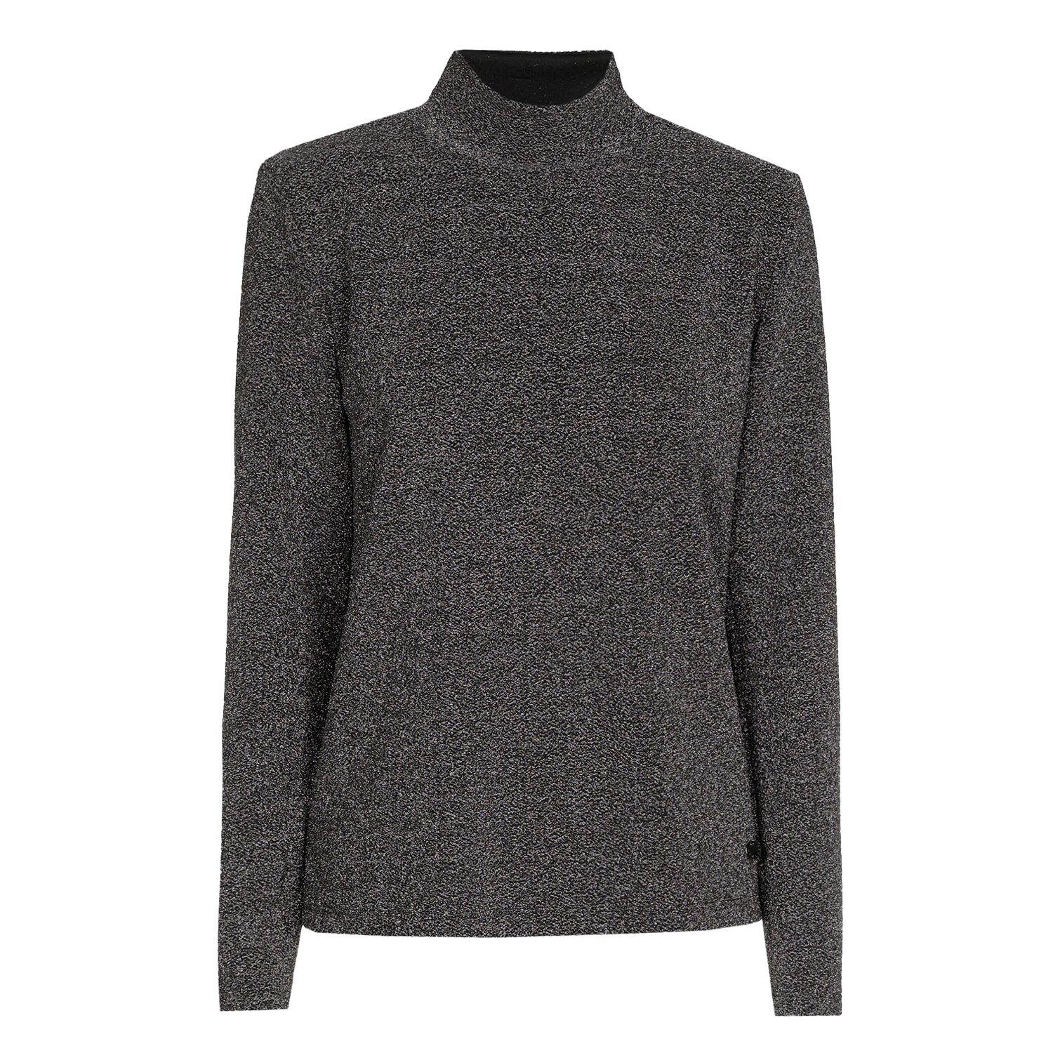 Shirt van het merk Xandres. Shirt van Xandres met glitter details en opstaande kraag. Materiaal: 65% Polyester, 30% Lurex, 5% Elastaan