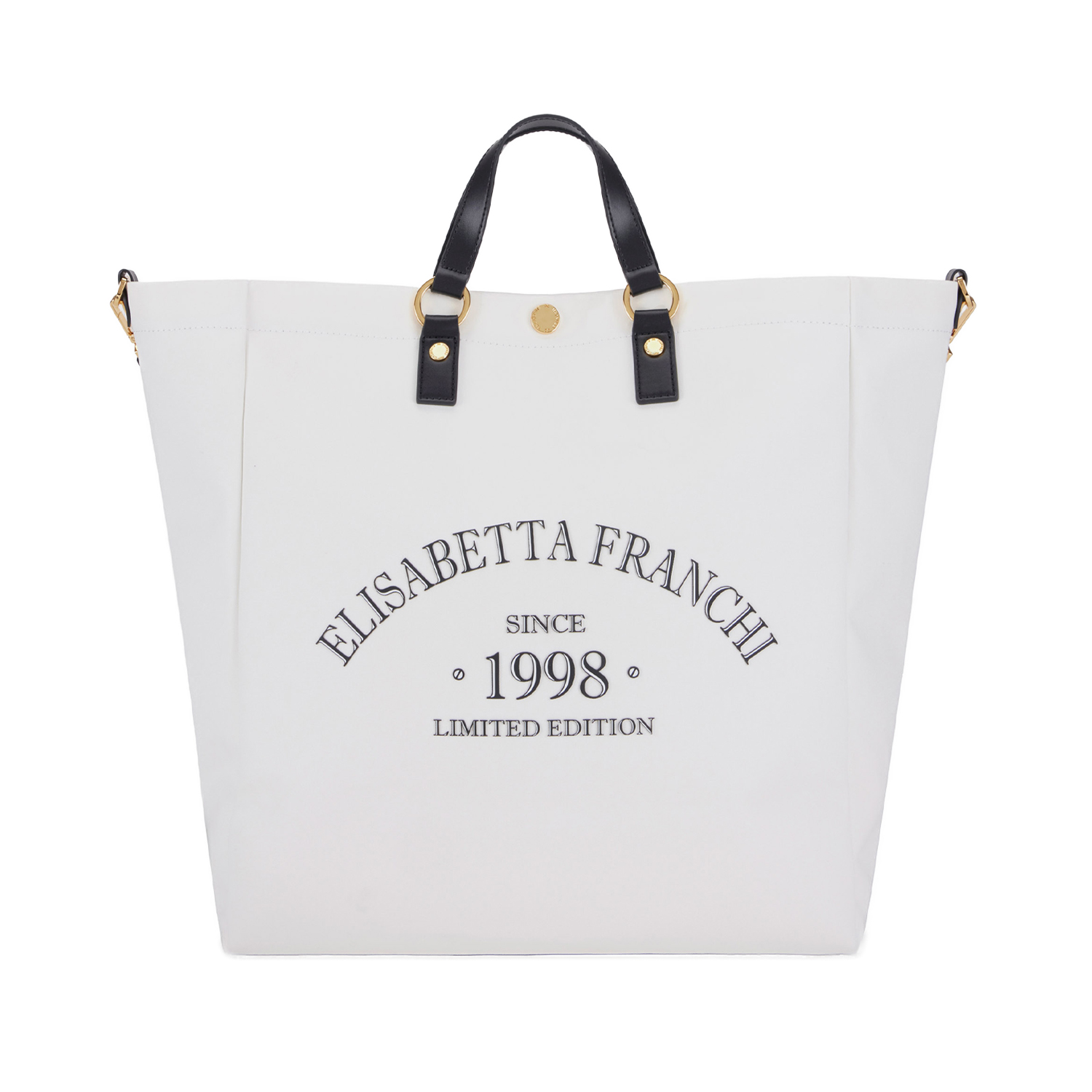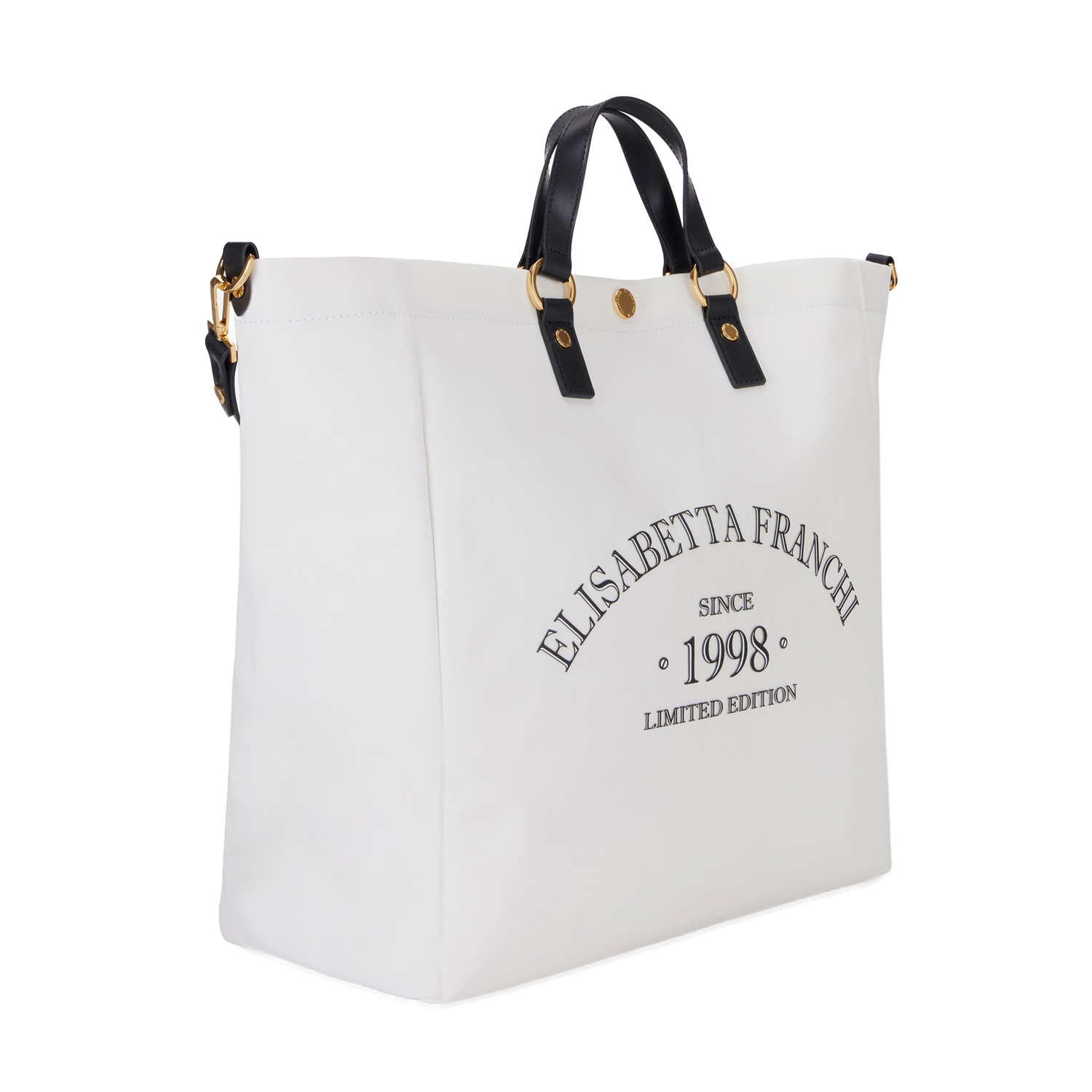 Tas van het merk Elisabetta Franchi. Tas van Elisabetta Franchi met handvatten en details van synthetisch materiaal met textuur van leereffect. Valt op door het logo en de tekstprint aan de voorkant. Materiaal: 100% Katoen