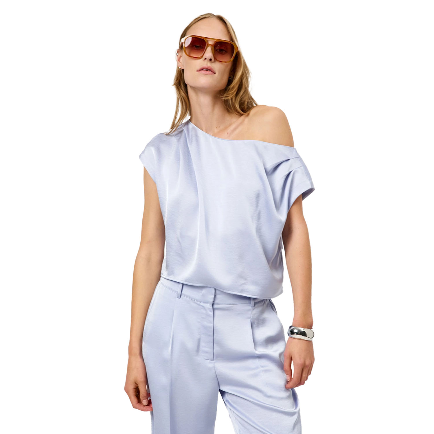 Blouse van het merk Dante6. Blouse van Dante6 met asymmetrische, losse pasvorm en geplooide details op de schouders. Materiaal: 100% Gerecycled Polyester