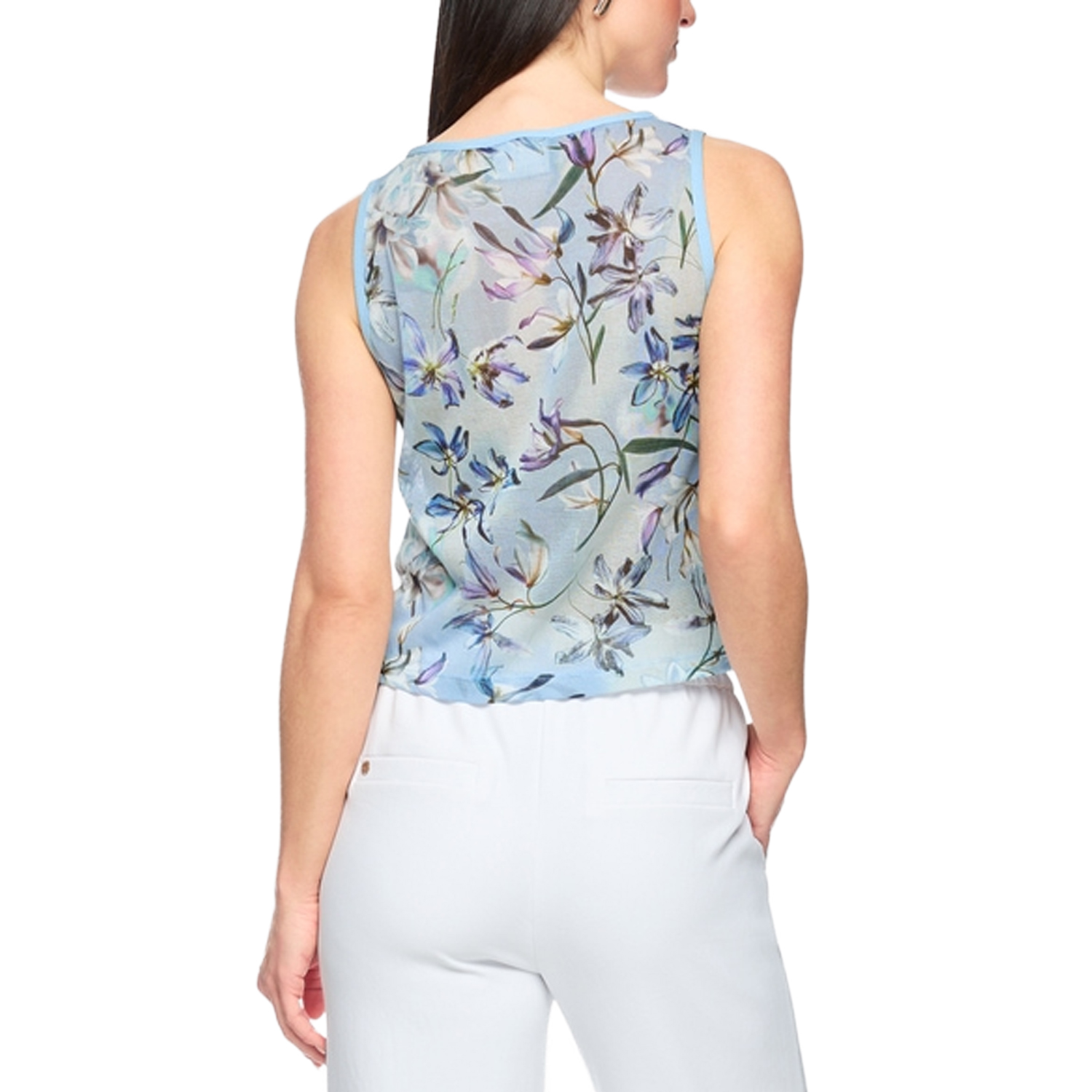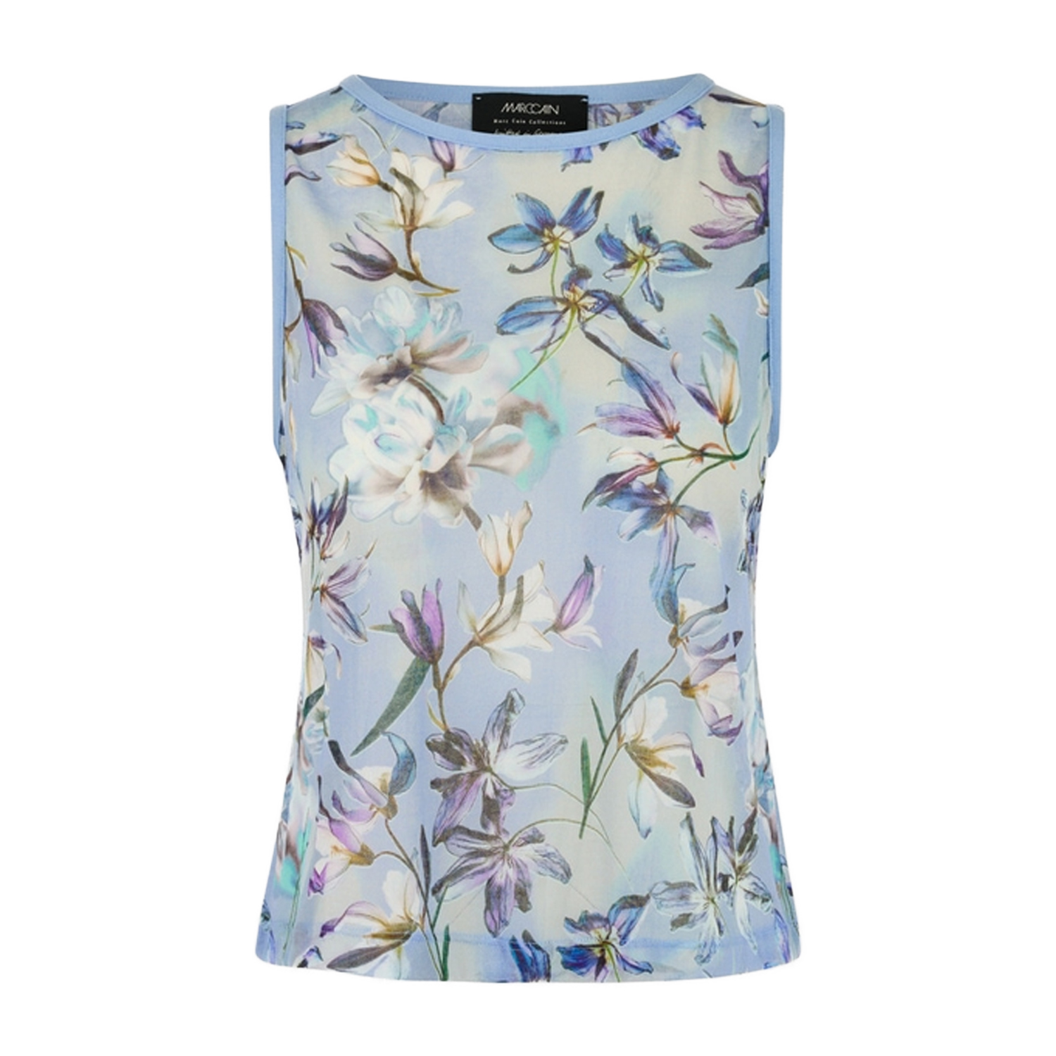 Top van het merk Marc Cain Collections. Top van Marc Cain Collections met all-over bloemenprint. De klassieke ronde hals zorgt voor een tijdloze look. Materiaal: 82% katoen, 18% polyamide