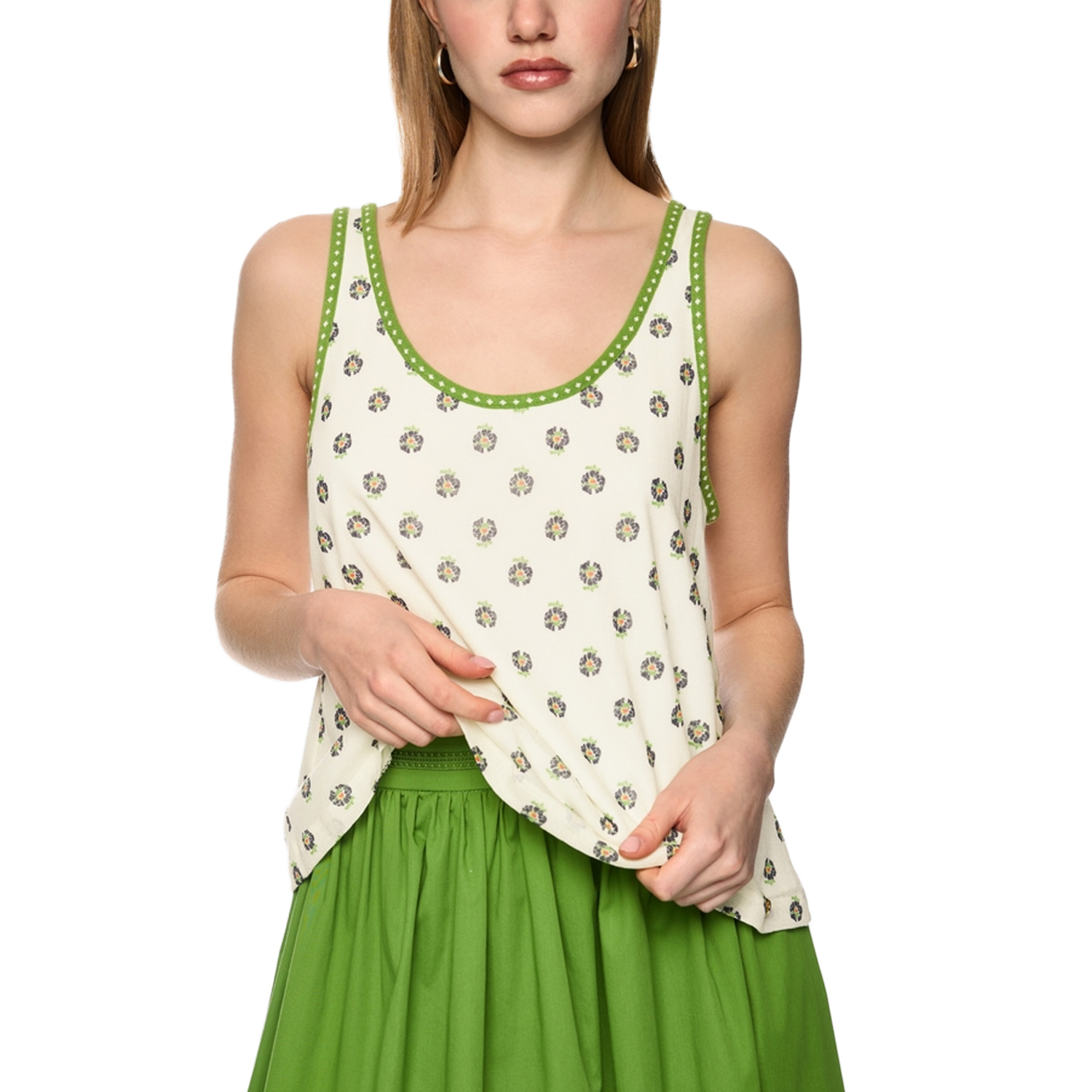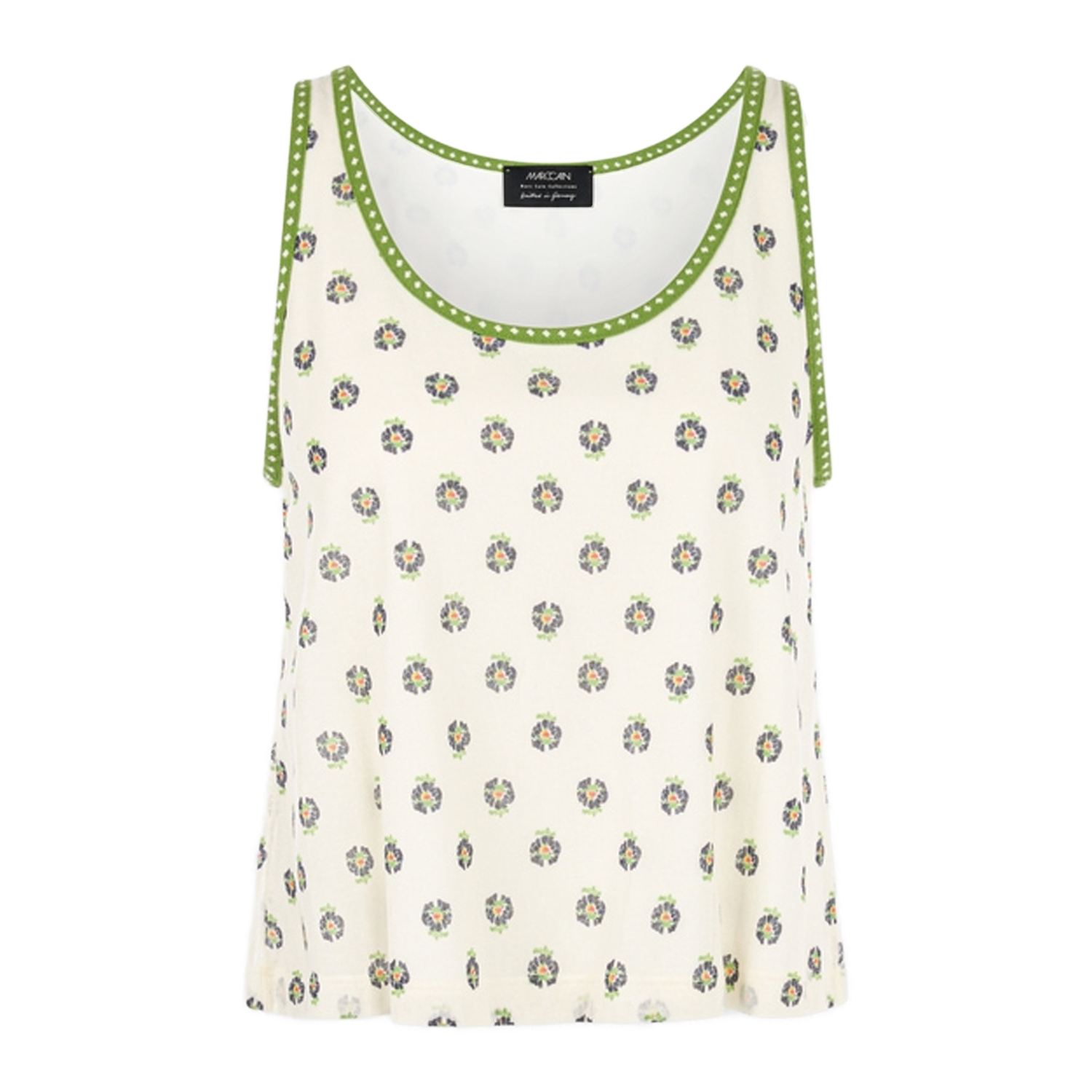 Top van het merk Marc Cain Collections. Top van Marc Cain Collections van stretchkatoen met zachte binnenvoering, bedrukt met gestileerde hibiscusbloemen. Materiaal: 82% katoen, 18% polyamide