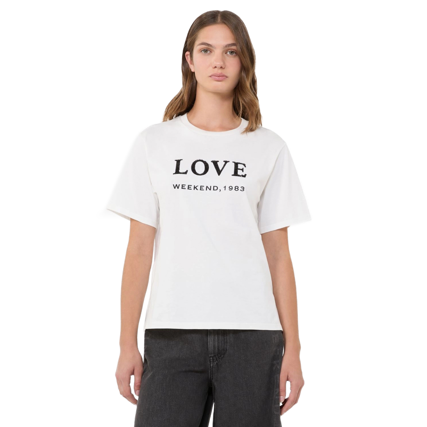 T-shirt van het merk Weekend Max Mara. T-shirt van Weekend Max Mara met ronde hals en glitter opdruk aan de voorzijde. Materiaal: 100% katoen