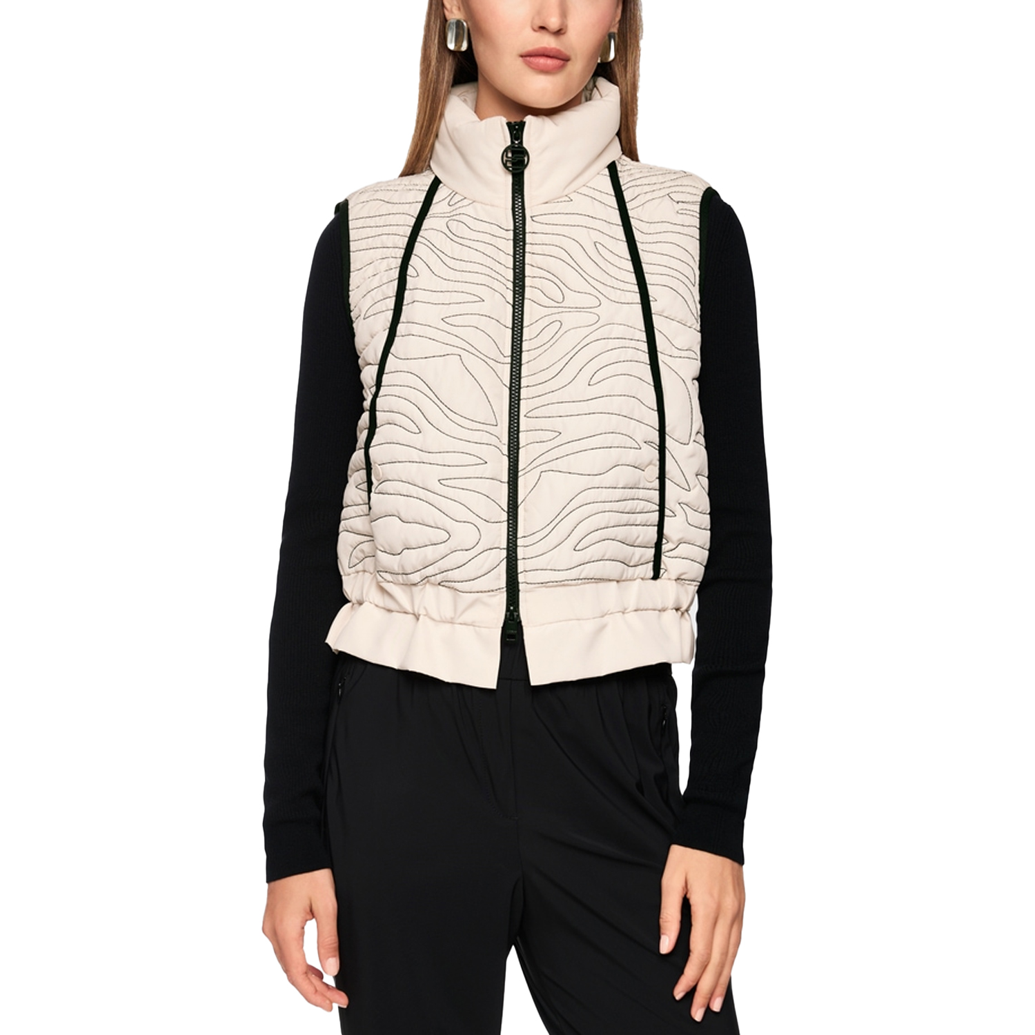 Bodywarmer van het merk Marc Cain Sports. Bodywarmer van Marc Cain Sports met elastische tailleband en de daarop aangebrachte volantrij. Materiaal: 100% polyester