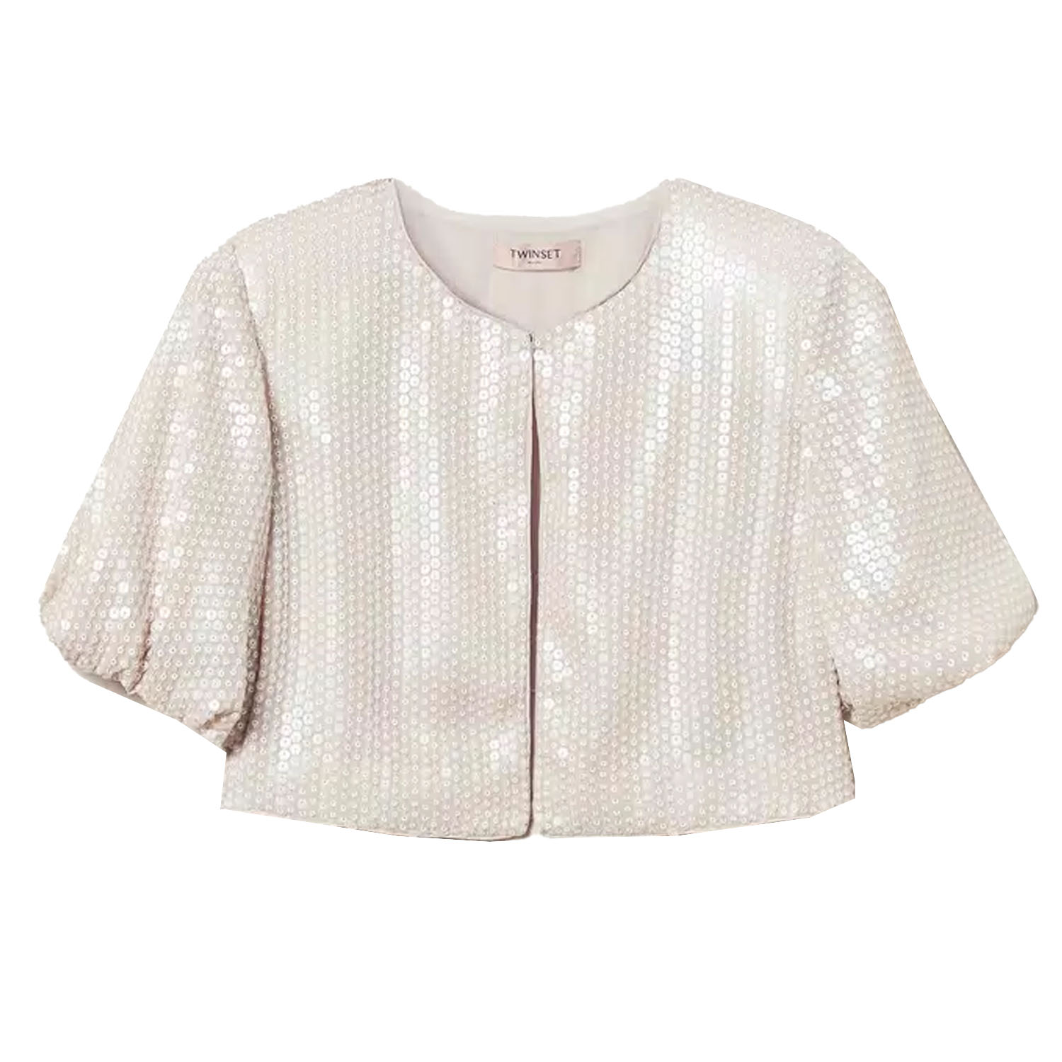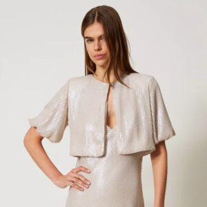 Vest van het merk Twinset. Vest van Twinset met pofmouwen en all- over pailletten. Materiaal: 100% Polyester