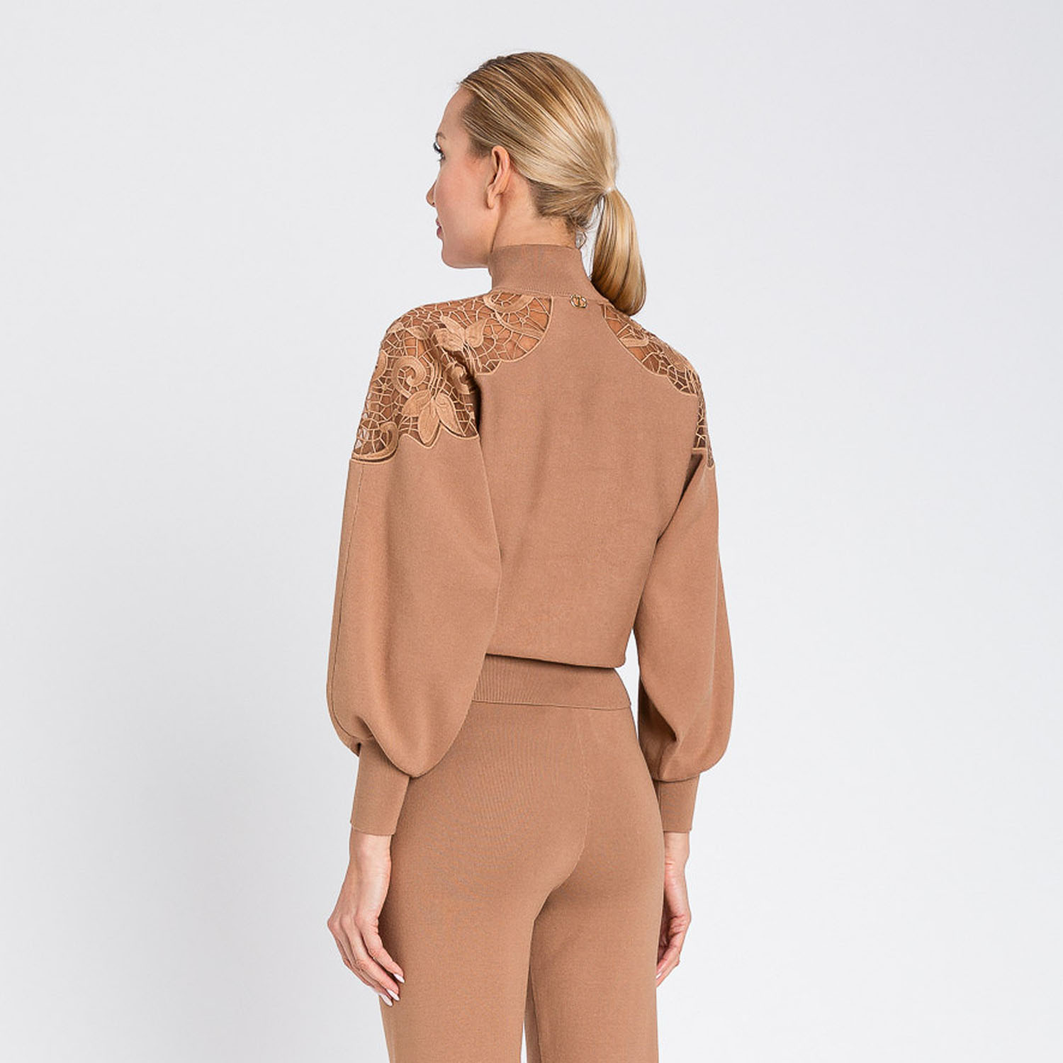 Vest van het merk Twinset. Vest van Twinset met kanten details en pofmouwen. Materiaal: 58% Viscose, 22% Polyester, 20% Nylon